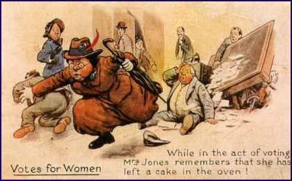 – Первым политически активным женщинам, попавшим в историю как суфражистки[7] – противостояло хорошо организованное и финансируемое анти-Суфражистское движение. Лидеры анти-суфражистов доказывали, что в действительности женщины не хотят голосовать, что они слишком некомпетентны и необразованны.