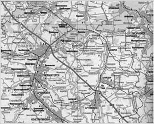 Места боев вокруг Славянска в привязке к спутниковой карте