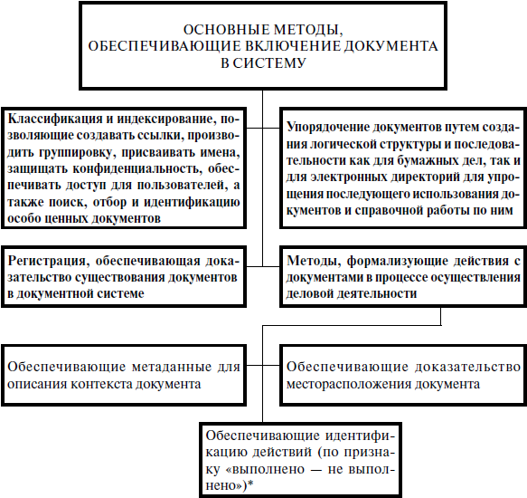 Такие метаданные особенно необходимы для контроля статуса, структуры и целостности документа в любое определенное время, а также для показа его связей с другими документами. Основные методы, обеспечивающие включение документа в систему представлены на рис. 1.6.