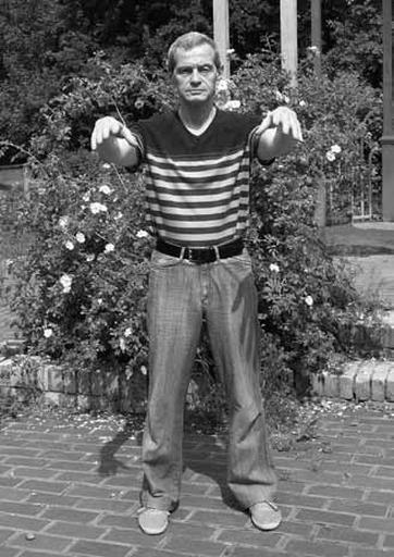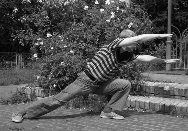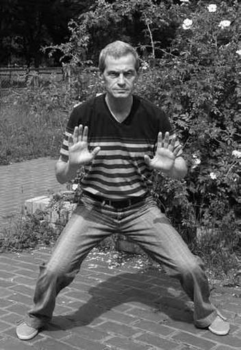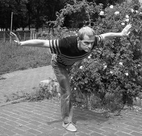 В таком «наклоненном» состоянии нужно постоять, глядя на левую ладонь и спокойно дыша. Время такого «статического стояния» колеблется от времени, равного одному-двум «вдохам-выдохам», до «сколько захочется».