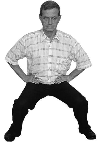 Принятие положения «Изваяния всадника» (еще один перевод названия Ма-Бу) производится следующим образом. Ноги поставить шире плеч (примерно на ширине двух – трех расстояний стоп), ступни параллельно, опора на всю стопу, центр тяжести посередине расстояния между ногами, т. е. каждая нога несет на себе 50 % веса.