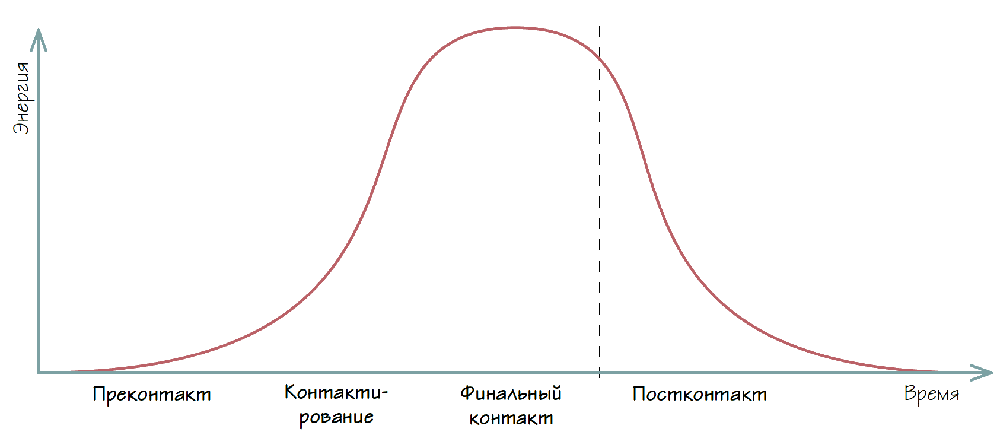 3. Завершающая. После контакта уровень энергии спадает. Наступает время спокойно переработать и присвоить себе полученный опыт, подвести итоги.