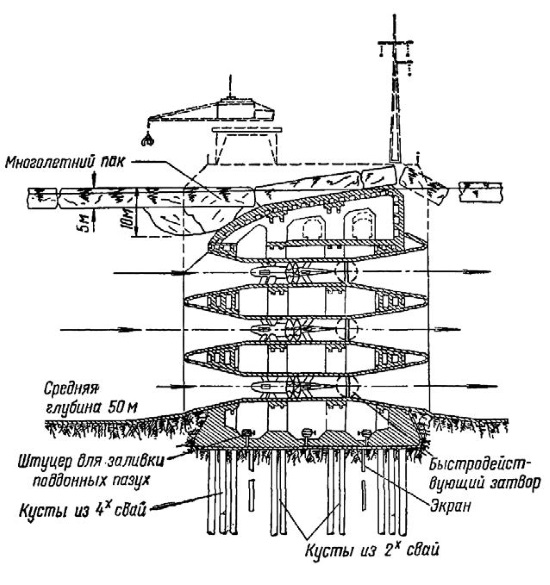 Интересно, что для увеличения силы выталкивания льдов автор предлагал соорудить на льду брезентовые заборы – паруса: «При попутном ветре паруса – заборы поднимаются, а при встречном опускаются. Одни только паруса в 1 млн кв. м могли бы создать мощность в сотни тысяч кВт…»[12] Е. А. Пасторс считал, что даже через месяц непрерывной работы кораблей в Центральной Арктике должна образоваться огромная полынья шириной в 200 км и длиной в 3000 км, которая будет поглощать большое количество солнечной радиации и вызовет интенсивное таяние льда. А с ликвидацией ледового покрова Северного Ледовитого океана должен коренным образом измениться климат Северного полушария Земли в сторону его существенного потепления, что, в свою очередь, принесёт многочисленные экономические и политические выгоды (в том числе – «даст возможность в нашей стране и коммунистических странах немедленно ввести коммунистический строй»)[13].