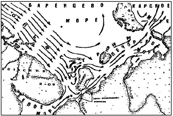 Проект размыва перемычки, соединяющей Канин полуостров с материком. Иллюстрация к статье В. Пьянкова