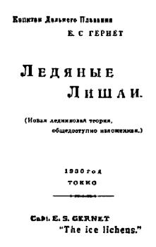 Е. С. Гернета «Ледяные лишаи». Токио, 1930 год