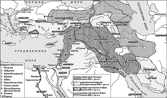 Рис. 4. Карта древнего Ближнего Востока в VII в. до н. э.