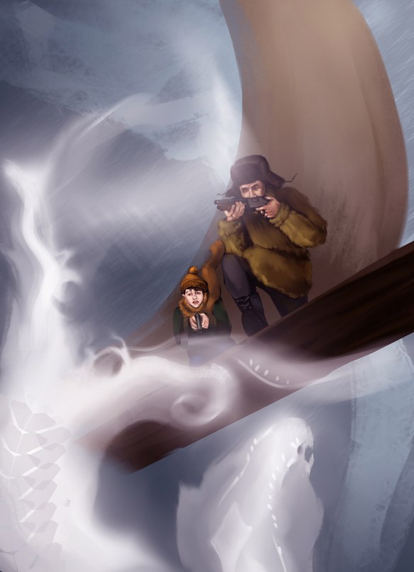 Мун начал тянуть веревку вниз, но каркас поддавался с трудом. Благо, Пятый это заметил и стал помогать мальчику. Парус сгибался. Скорость заметно спала. Орда змей приближалась с удвоенной скоростью, готовая вплеснуть яд в жилы Муна и Пятого. Мальчик не понимал, чего добивается Пятый, но спорить было поздно. В конце концов, парус был сложен почти параллельно земле. На доску вползли четыре змеи, которые тут же превратились в туман после выстрелов. Пока Пятый перезаряжался, на доске оказалось уже шесть тварей, но тут случилось невероятное: корабль начал взлетать.