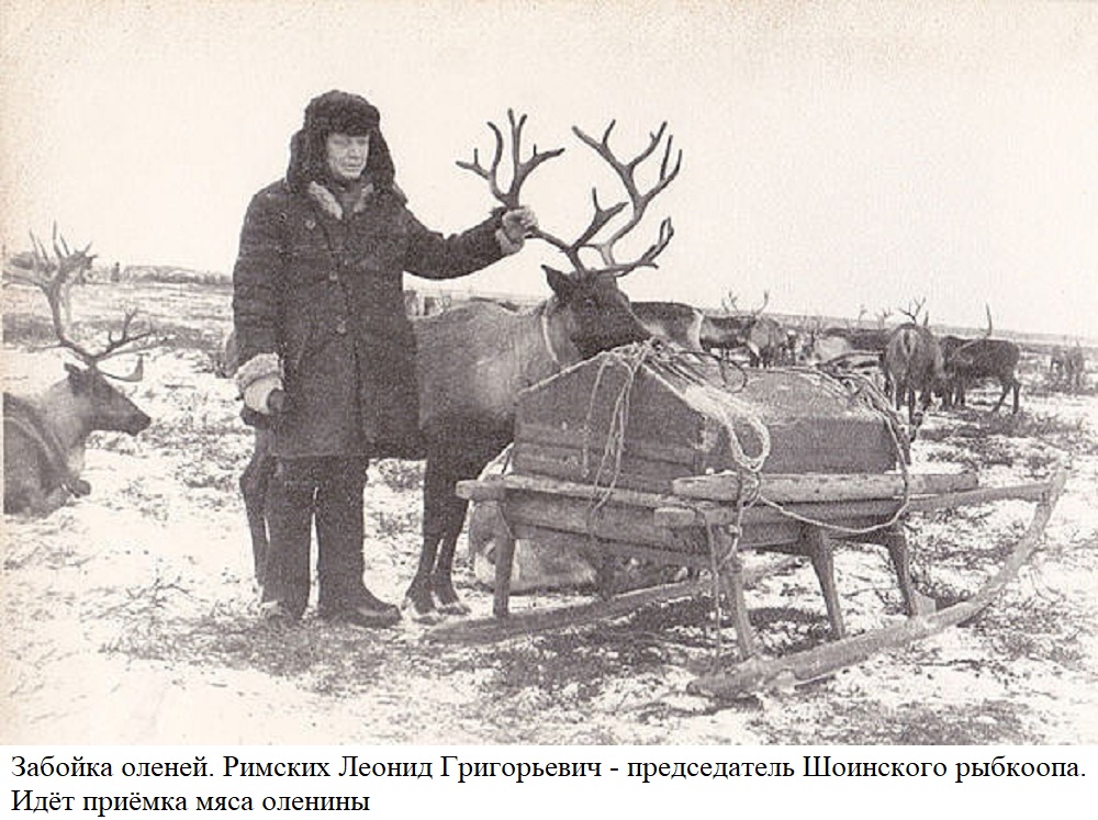 На территории посёлка был также рыболовецкий колхоз «Красный промышленник». В северо-восточной части Шойны был целый отдельный посёлок, который так и назывался “Колхозный”. Колхозники занимались выловом наваги в зимний период, охотой, держали связь с оленеводами и через них снабжали олениной местных жителей. В посёлке был крупный рогатый скот, лошади. Для лошадей большое здание конюшни в районе аэродрома. Лошадей было много, так как в зимний период на них вывозили на материк выловленную рыбу. Целые караваны загружались мороженой рыбой и по зимнику доставляли рыбу в Мезень, обратно везли продукты, почту, и людей. В двух местах стояли оленеводческие стойбища. Одно вблизи посёлка, в сторону воинской части “Сопка”, другое в районе дальнего аэродрома. Помню, как ходили с матерью к оленеводам покупали мясо оленину.
