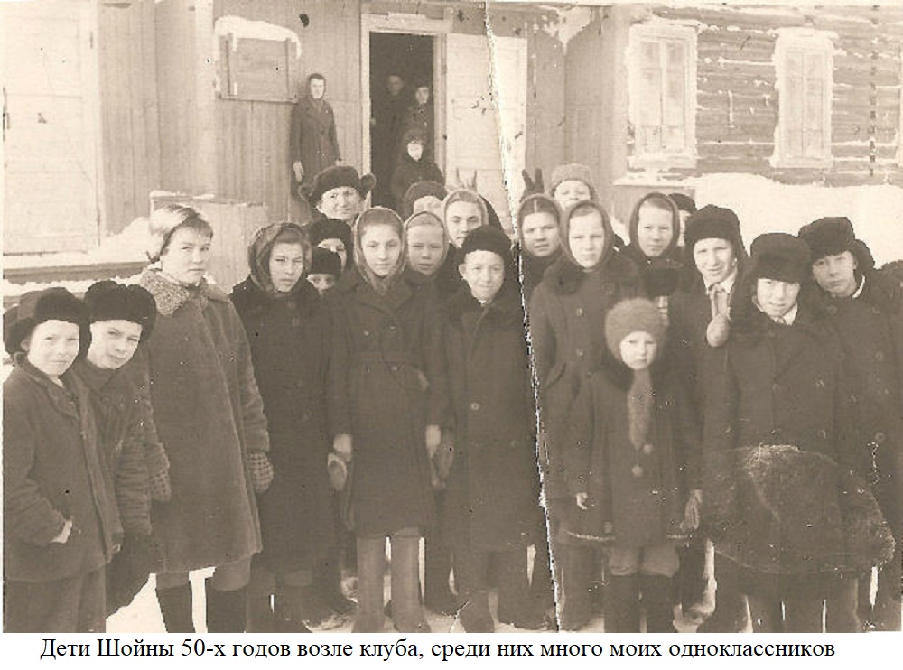 Образование дети получали в двух школах: школе для поселковых детей (русской) и школе с пришкольным интернатом для детей, кочующих оленеводов (ненецкой). В клубе Рыбников посёлка взрослые и дети смотрели киносеансы, здесь проходили все массовые мероприятия с жителями Шойны (концерты, лекции и т.д.). В посёлке работали две библиотеки поселковая и школьная. Сразу после войны было достроено здание детского сада. Помню большое здание бани с мужским и женским отделениями. Здание бани, к сожалению, сгорело где-то в начале шестидесятых годов.
