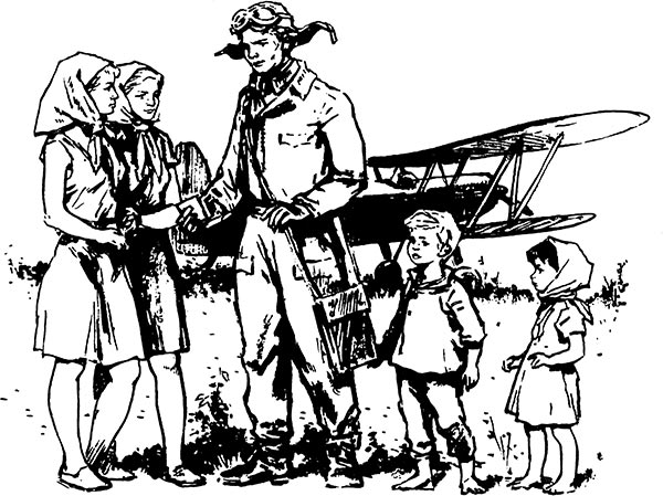 Вылез из самолета, вижу: из села со всех ног несутся ребятишки. Первыми подбежали два загорелых пионера. Спрашиваю: