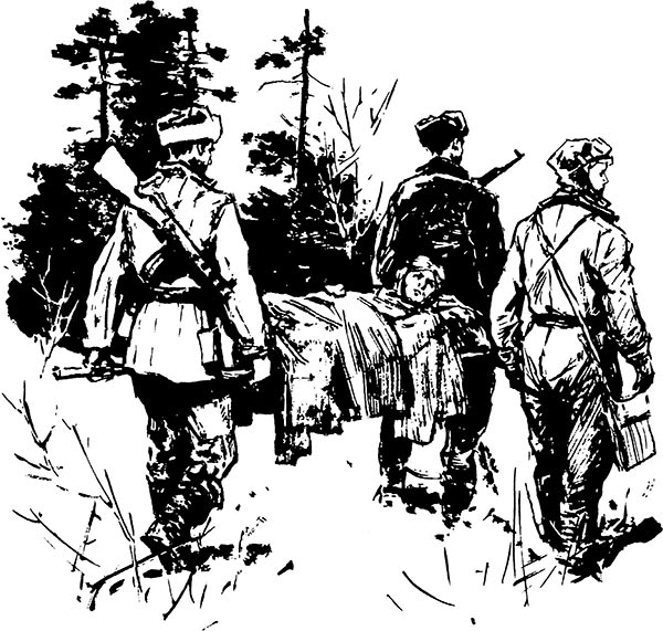 Уж не знаю, откуда у Фроси столько силы: она взвалила меня на спину и понесла. От боли я снова потерял сознание. Не знаю, сколько времени она меня так протащила. Говорит, что недалеко, но, по-моему, это неправда.