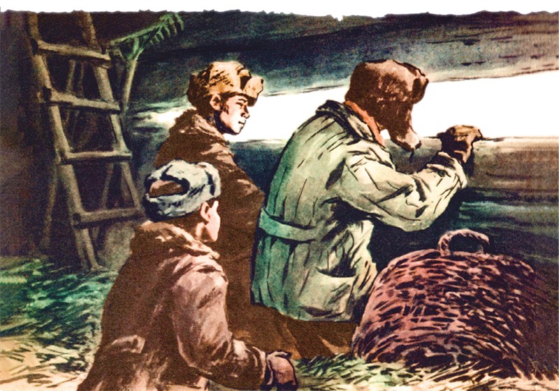 В это время вдалеке послышался гул самолётных моторов. Это к передовой летели воздушные корабли с красными звёздами на крыльях.