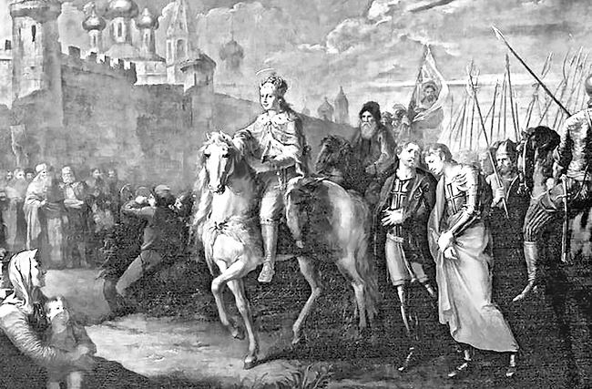 Въезд Александра Невского в Псков после битвы на Чудском озере. Художник Федор Моллер. XIX в.