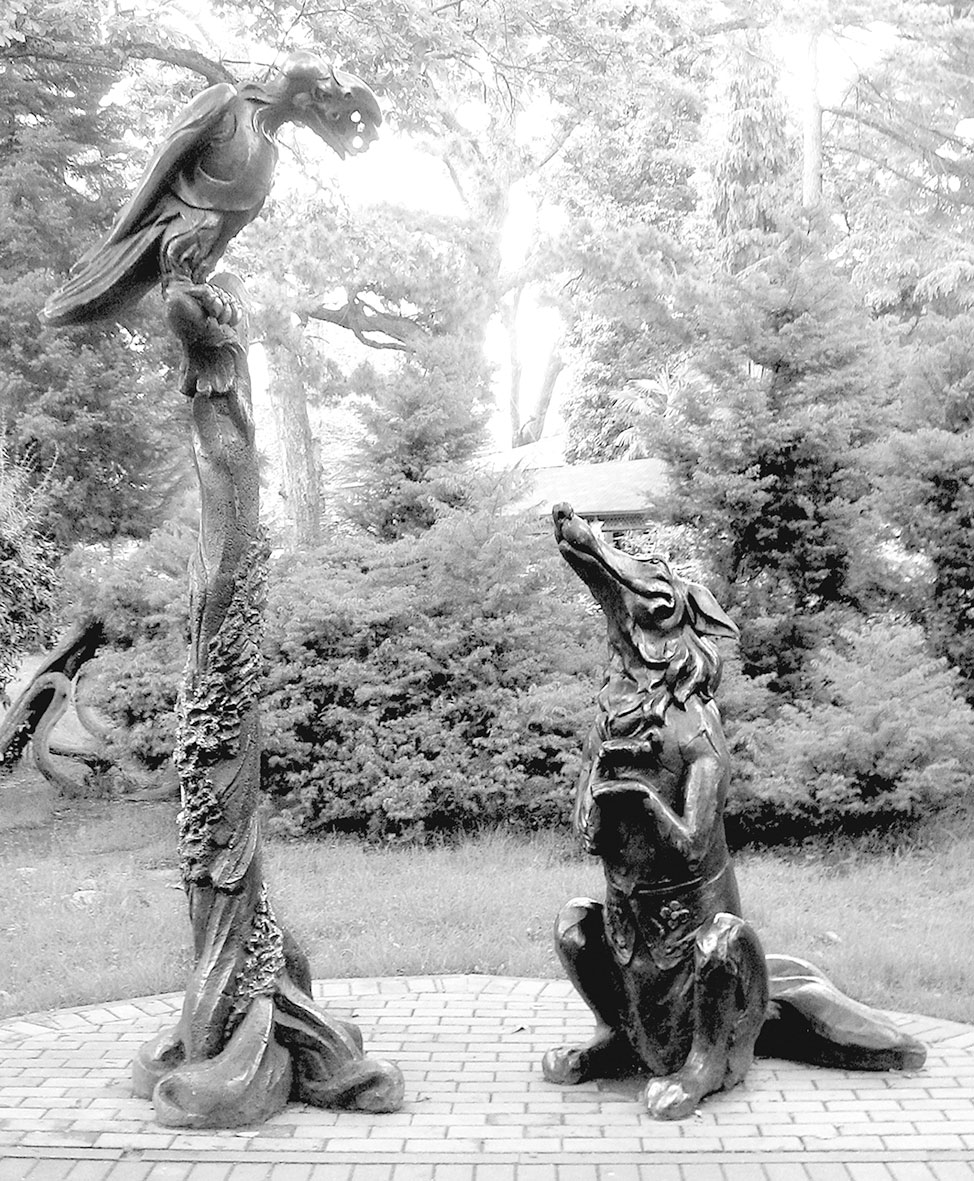 Памятник персонажам басни Крылова «Ворона и Лисица» в парке «Ривьера»