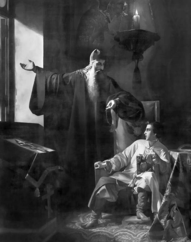 Царь Иван Грозный и иерей Сильвестр во время большого московского пожара 24 июня 1547 года. Художник Павел Плешанов. 1856
