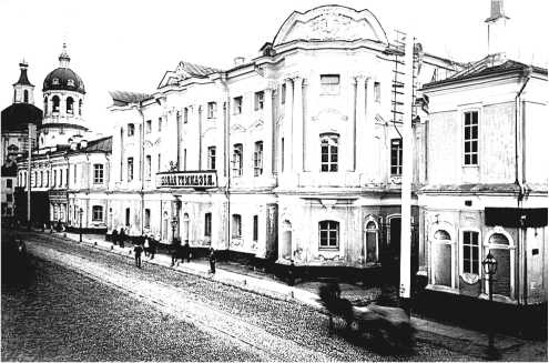 Эта гимназия была открыта в 1849 г. в дому Пашкова на Моховой улице, но в 1861 г. уступила это уникальное здание переведенному из Петербурга в Москву Румянцевскому музею. Она переехала на Покровку, в городскую усадьбу Апраксиных-Трубецких (дом № 22), привлекавшую особое внимание москвичей пышными барочными украшениями, оригинальной колоннадой, наличниками с декоративной лепниной, и получившую наименование «Дом-комод».