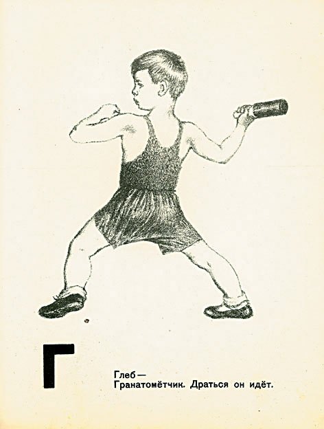 Когда я сегодня смотрю на эти картинки, мне становится «мучительно больно» за себя маленького. Теперь я понимаю, чем меня чаровали, например, герои Лебедева, – это было зеркало, это был я сам, это были живые ребята, каждым из которых я хотел стать: «Боря-барабанщик», марширующий в такт ударам своих палочек, «Глеб-гранатомётчик» в широких трусах, со спортивной гранатой в руке, «Павел-пограничник» в военной фуражке и с собакой… Всё это были клише: