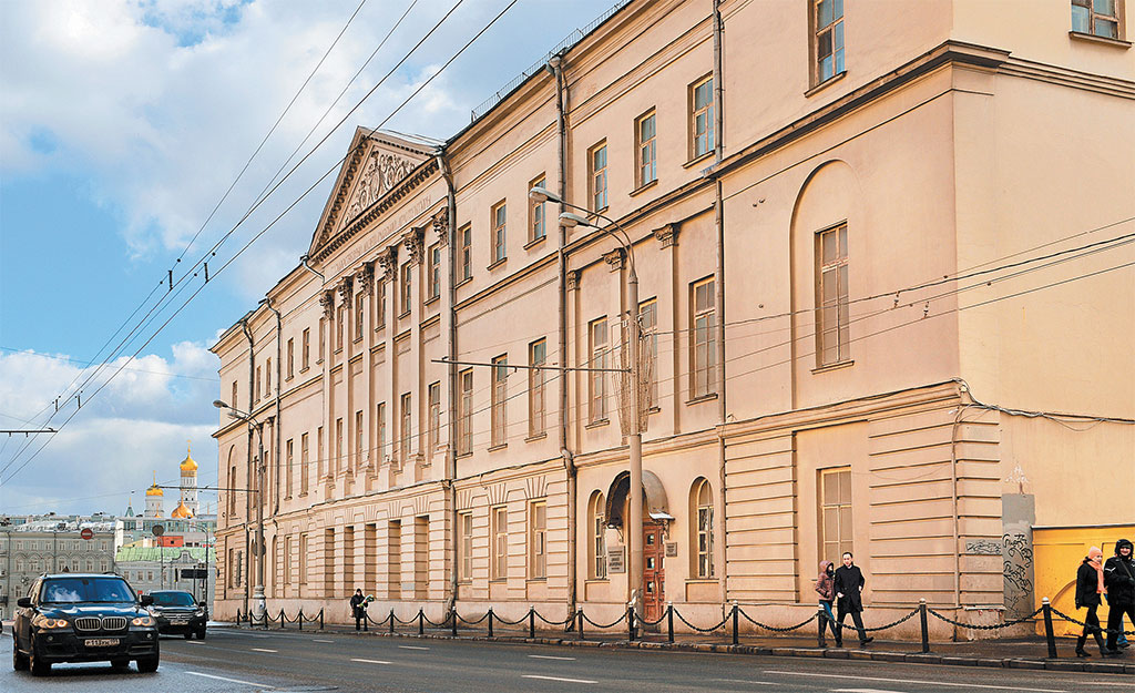 Шереметевский двор, который мы обошли, примыкает к территории Московского университета. Внутренними двориками мы можем выйти к одному из старых зданий МГУ – Аудиторному корпусу (Моховая ул., 9, стр. 1). Эта часть университета трижды перестраивалась, но сохранила структуру классической городской московской усадьбы. Владение на Моховой принадлежало троюродному брату строителя Дома Пашкова. Этот Пашков разбогател, женившись: приданое его жены состояло из двух заводов и 19 000 крепостных душ. В 1832 году университет приобрел усадьбу Пашкова. Главный дом стоял в глубине парадного двора, его перестроил архитектор Евграф Тюрин под нужды учебного заведения.