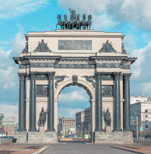 Сегодня усадьбу занимает Музей архитектуры. Поэтому во дворе можно полюбоваться чугунным декором Триумфальных ворот. Ворота были сооружены на площади Тверской заставы в 1834 году в честь победы над Наполеоном. В 1936 году Триумфальное сооружение разобрали. Чугунные барельефы, капители колонн, доски с надписями, выполненные скульпторами Иваном Витали и Иваном Тимофеевым по рисункам архитектора Осипа Бове, демонтировали и передали в Музей архитектуры. Когда в 1966 году ворота воссоздали на Кутузовском проспекте, то сделали точные копии скульптурного декора, а подлинные детали оставили в музее. Самый выразительный барельеф – «Освобождение Москвы»: Александр I, одетый в богатое платье римского цезаря, протягивает руку русской красавице, опирающейся левой рукой на щит с древним московским гербом. То ли поднимает Москву, растоптанную неприятелем, то ли просит денег у богатой Первопрестольной на борьбу с Наполеоном.