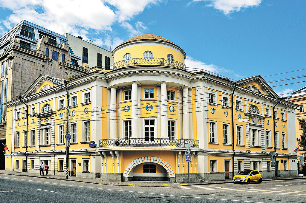 Соседняя с голицынской по Малому Знаменскому переулку усадьба Лопухиных также входила в Пречистенский дворец. Главный дом усадьбы занимали дежурные кавалеры, там же жил фаворит Екатерины Григорий Потемкин. Нынешний портик на фасаде здания появился в начале XIX века при следующих владельцах – Протасовых. Во фронтон был помещен герб фамилии. Усадьбу надо обязательно обойти. Заворачиваешь за угол – и из XIX века переносишься в петровские времена, когда на пожалованной государем земле царский тесть Федор Лопухин поставил двухэтажные палаты на высоком подклете. Уже в наше время реставраторы восстановили на дворовом фасаде декор XVII века и реконструировали богатое Красное крыльцо.