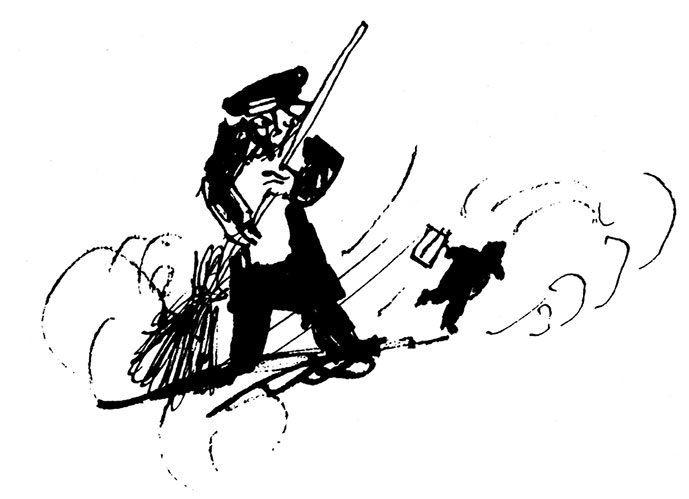Я уверен, что сейчас появится милиционер.