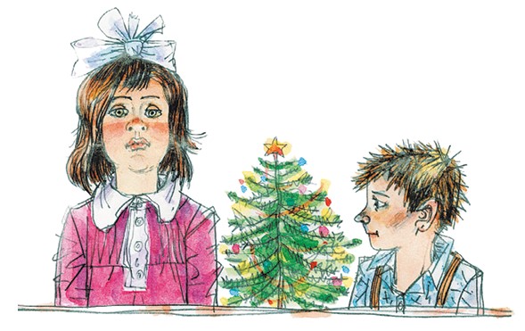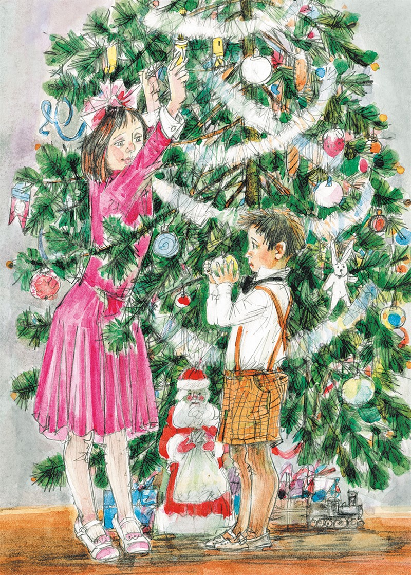 – Минька, мама ушла на кухню. Давай пойдём в комнату, где стоит ёлка, и поглядим, что там делается.