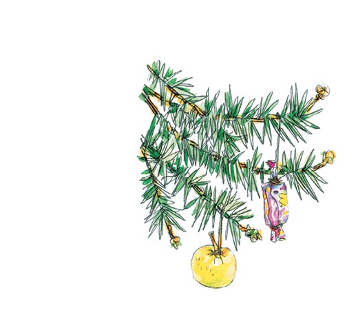 И я подхожу к ёлке и откусываю маленький кусочек яблока.