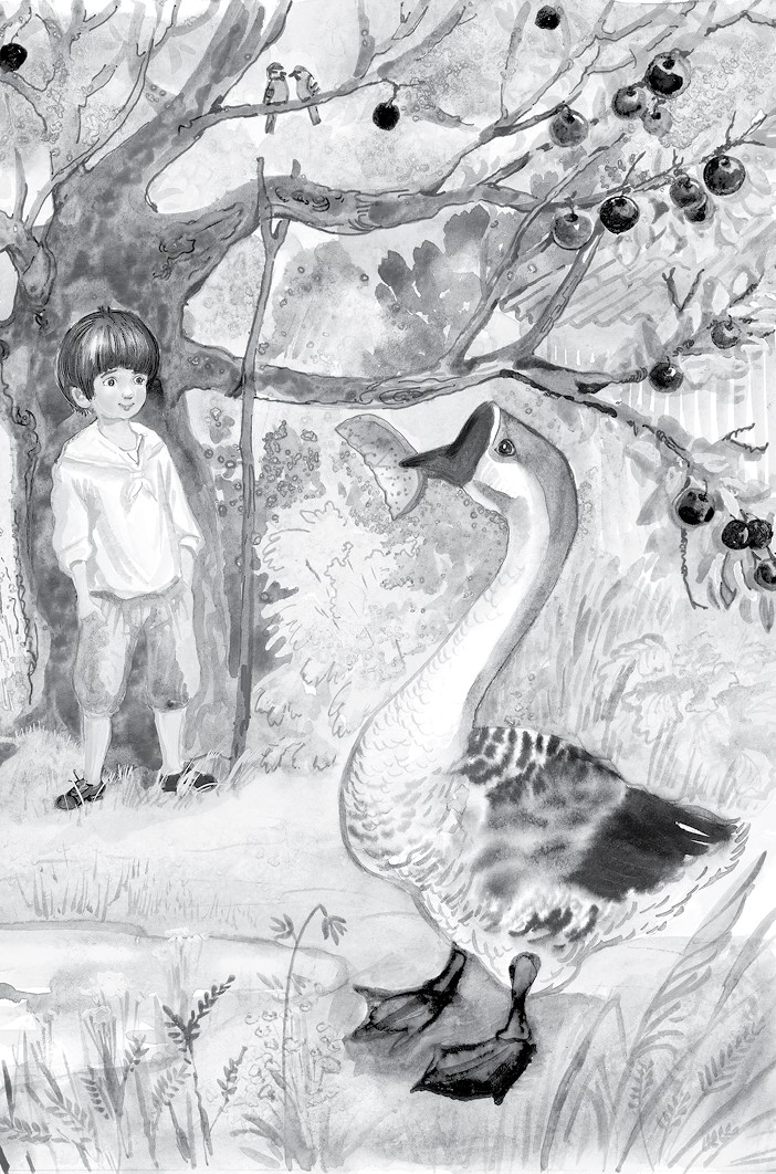 Это был умный гусь. Но то, что он не дал мне разломать корку, показывает, что он был не такой уж особенно умный. Не то чтобы дурак, но немножко он всё-таки отставал в своём умственном развитии.