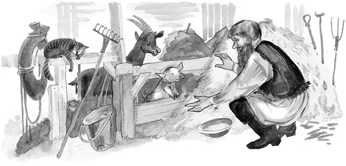 И как только поросёнок хотел завизжать, вор быстро завернул его в одеяло и тихонько вышел с ним из сарая.