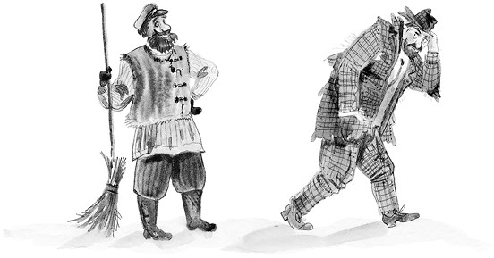Дворник рассердился на тётку – зачем она его зря позвала, – выругал её и ушёл.