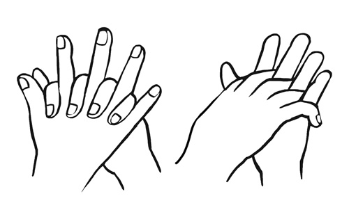 Сцепи руки в «замок». Потом выпрями пальцы на одной руке, чтобы получился «ёжик». Пооче-рёдно выпрямляй и сжи-май пальцы то на одной, то на другой руке.