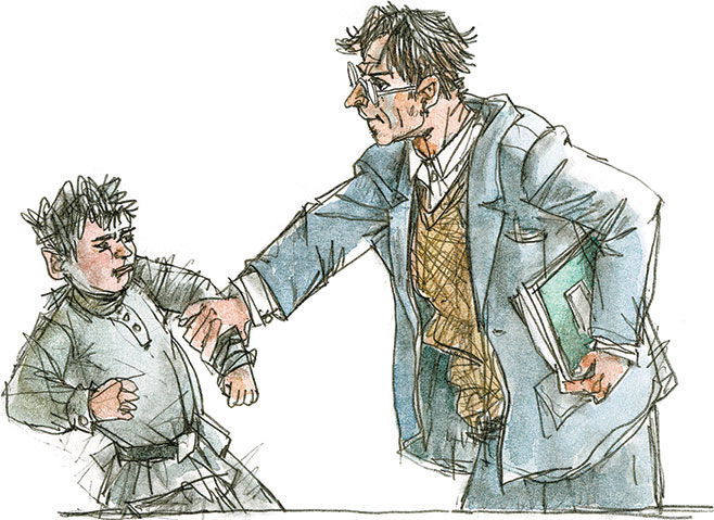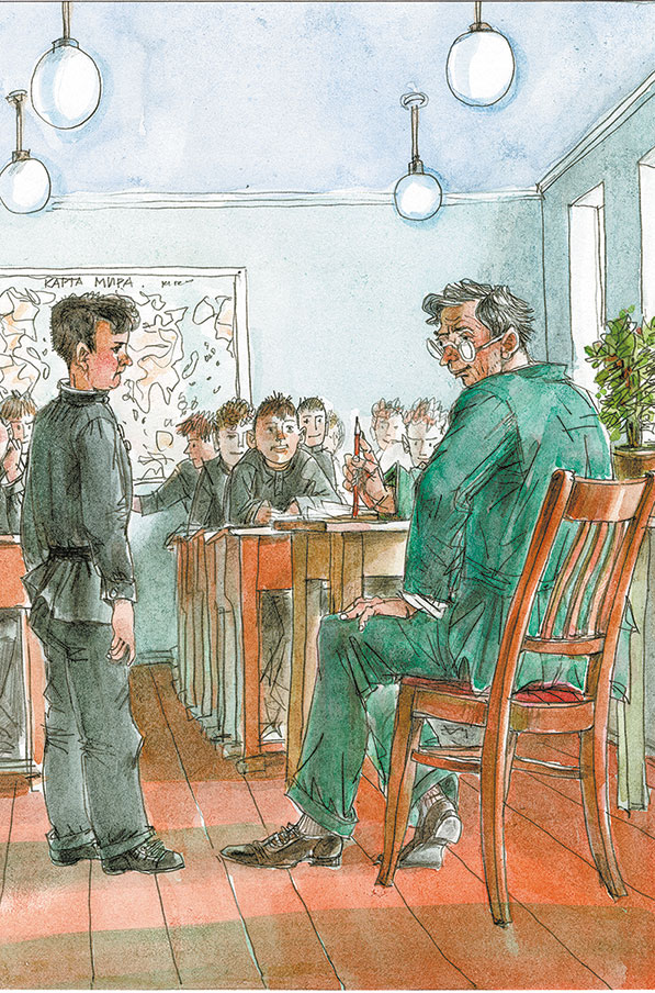 – Что ты сказал? – грозно кричит учитель. И, схватив меня за руку, тянет наверх, в директорскую. Но вдруг отпускает меня. Говорит: – Иди в класс.