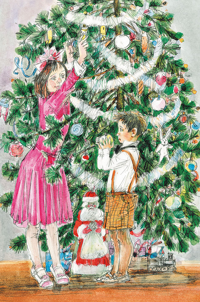 – Минька, мама ушла на кухню. Давай пойдём в комнату, где стоит ёлка, и поглядим, что там делается.