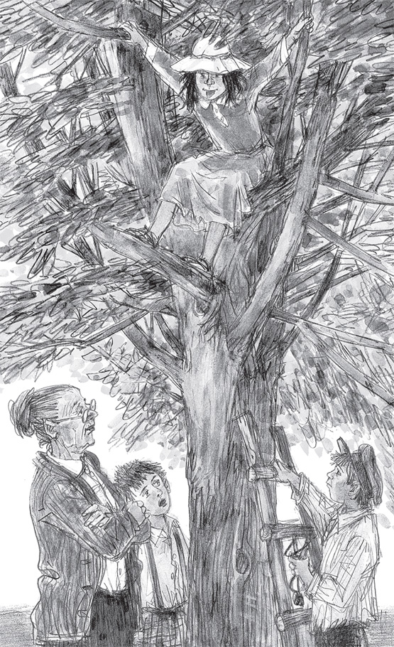 Чтобы избежать трёпки, Лёля, оказывается, влезла на дерево и, сидя на дереве, дразнила меня и бабушку языком.