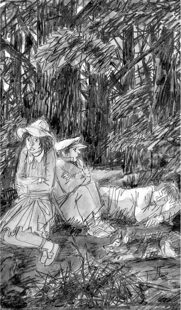 Стёпка захрапел. И Тузик тоже засопел носом. Но мы с Лёлей долго не могли заснуть. Нас пугал тёмный лес и шум деревьев. Сухую ветку над головой Лёля вдруг приняла за змею и от ужаса завизжала.