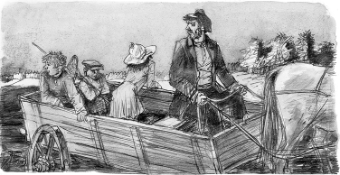 Позади раздался скрип колёс. Это какой-то дяденька ехал на телеге.