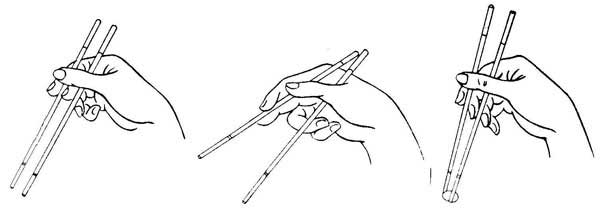 Палочки следует держать в правой руке (если, конечно, вы правша). Если левша, то в левой.
