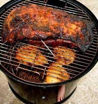 На дно тазика кладут тонкие вишневые веточки, можно и ветки от других деревьев, но желательно брать от душистых. Готовая рыба укладывается на решетку тазика, накрывается крышкой, которая сверху прижимается грузом, чтоб не было щелей. Через 35–45 мин на маленьком огне рыба готова. Если нет утечки через дырки в жабрах и порезах – сочная. Получается рыба горячего копчения. Так же можно делать кур, мясо. Особенно хорошо получаются окорочка. Только их надо класть каждую в отдельное фольговое корытце. Все это можно проделать и дома – на газе, как следует позаботившись о вытяжке.