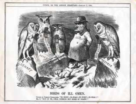 Owls depicted as cultural icons in a Punch cartoon from 1888, an Ancient Greek coin, and a clay plaque from Iraq, c. 1792–1750 BCE.