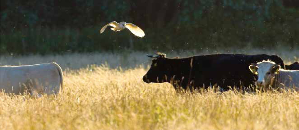 A Barn Owl hunting over a cattle pasture proves that owls can thrive in human landscapes, if suitably managed.