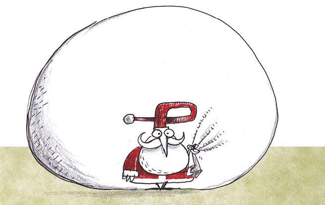 Случалось, что на резких поворотах подарки вываливались из багажного отделения саней. Уже даже в новостях рассказывали, что два года подряд происходит редчайшее и весьма щекотливое природное явление – осадки из подарков.