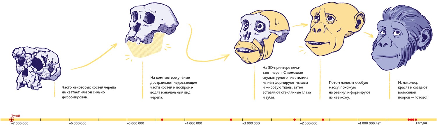 Каждая окаменелая кость когда-то принадлежала живому существу. То же самое можно сказать и о черепах древнейших людей. Но как же они выглядели? Чтобы узнать это, профессионалы заново собирают черепа из найденных фрагментов костей. Примерно так: