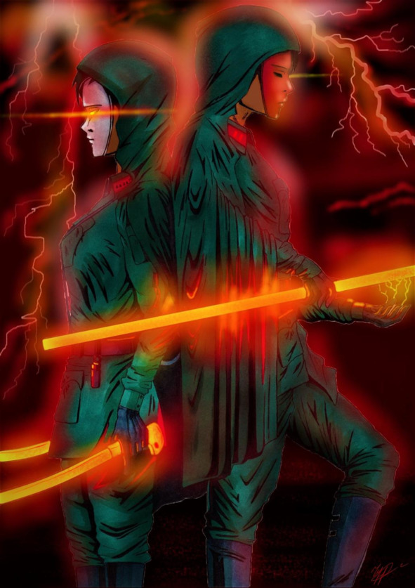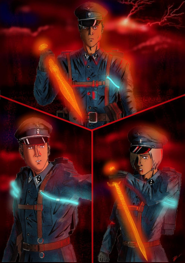 Вдруг Эрнеста и Эрвин решили воспользоваться энергией и заглушить боль. Оказывается, они это умели. Каждый создал свое энергетическое оружие, сразу атаковав демонов, но их навыки в фехтовании явно были крайне низкими. Эрнеста создала энергетический палаш, точно такой же, как и ее личный, но против двух шашек Кати, это бесполезное оружие. Эрвин был вооружен серьезнее, у него был длинный меч, но он не для него. Он больше бы подошел Хартману, нежели ему. А Хартман. Чего он стоит, дурак…? Он словно впал в какой-то ступор, наблюдая как его друзья, командиры, беспомощно пытаются ударить двух врагов.