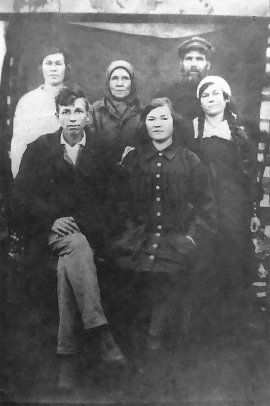 Семья Ершовых. Слева направо в верхнем ряду: Анна, мать – Дарья Михайловна, Отец – Василий Николаевич; в нижнем ряду: Алексей, Евдокия и Лидия. Михаила и Надежды на фотографии нет.