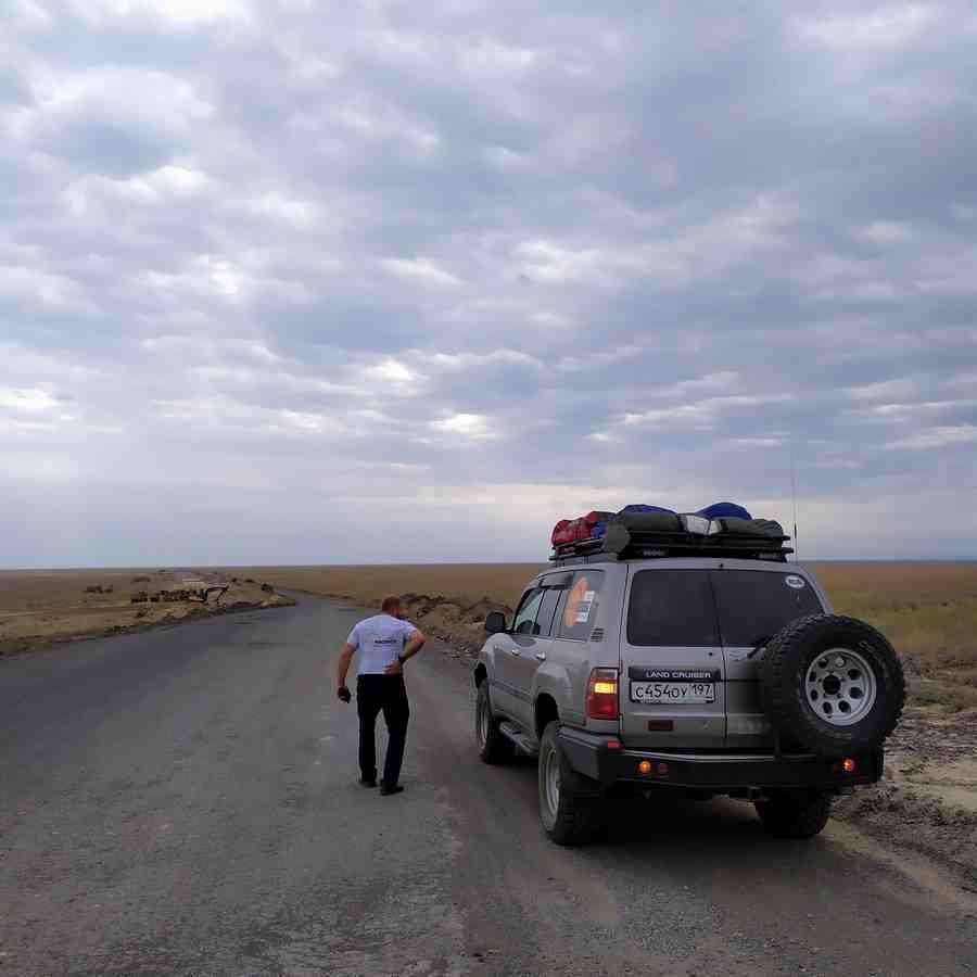 Больше 12 часов мы неслись по степям Северного Казахстана, если, конечно, так можно назвать нашу скорость в 40-60 км/час. Разбитая дорога времен СССР, многочисленные ремонтные работы с объездами, где скорость ограничена знаком до 40 км/час и полиция, что следит за соблюдением скоростного режима. Как стало мне известно позднее – им запретили останавливать без причины и прятаться, поэтому они стали «активно охотиться», патрулируя сложные участки дороги и следя за потоком. Не раз мы видели как кого-то прижимали к обочине даже на этом «убитом» участке пути.