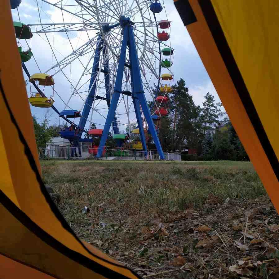 К ночи мы добрались до Талдыкоргана и парни пошли спать в уже забронированную гостиницу, где их уже ждали, я же – отправился на поиски приключений. Поиск места ночевки в незнакомом месте посреди ночи – это то, что нужно, если хочется острых ощущений. Долго искать не пришлось, я наткнулся на парк с колесом обозрения, подыскал место, что не бросается в глаза и поставил палатку. Как ни странно, на том же месте я обнаружил чей-то черепок. Кто-то, видимо, рассуждал так же как я, когда решил кого-то съесть в стороне от всех. Хе-хе. Доброй ночки.