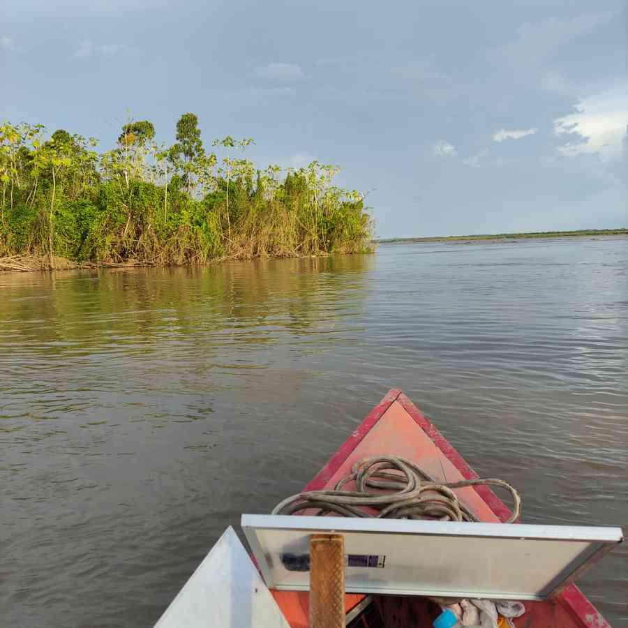 Прошло 15-20 минут. Я в середине течения реки Укаяли. Мутная песчаная вода вокруг, поверхность укрыта лёгкой рябью волн. Мне всё ещё не верится. Я начинаю сплав по Амазонке, царице всех рек!