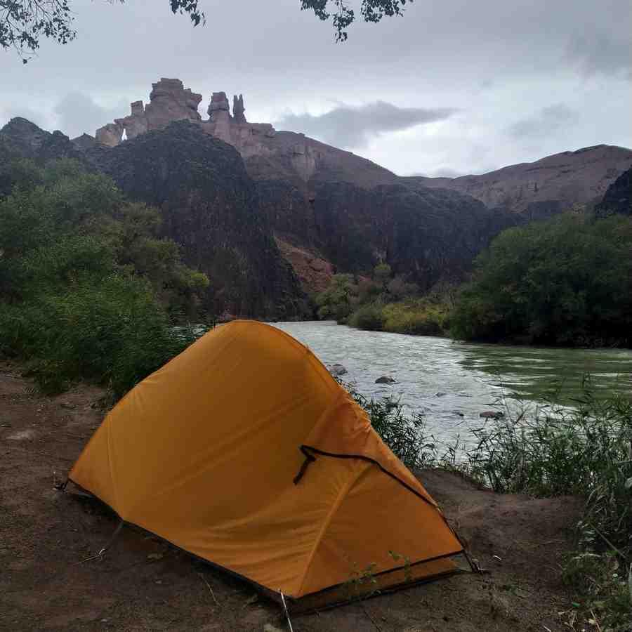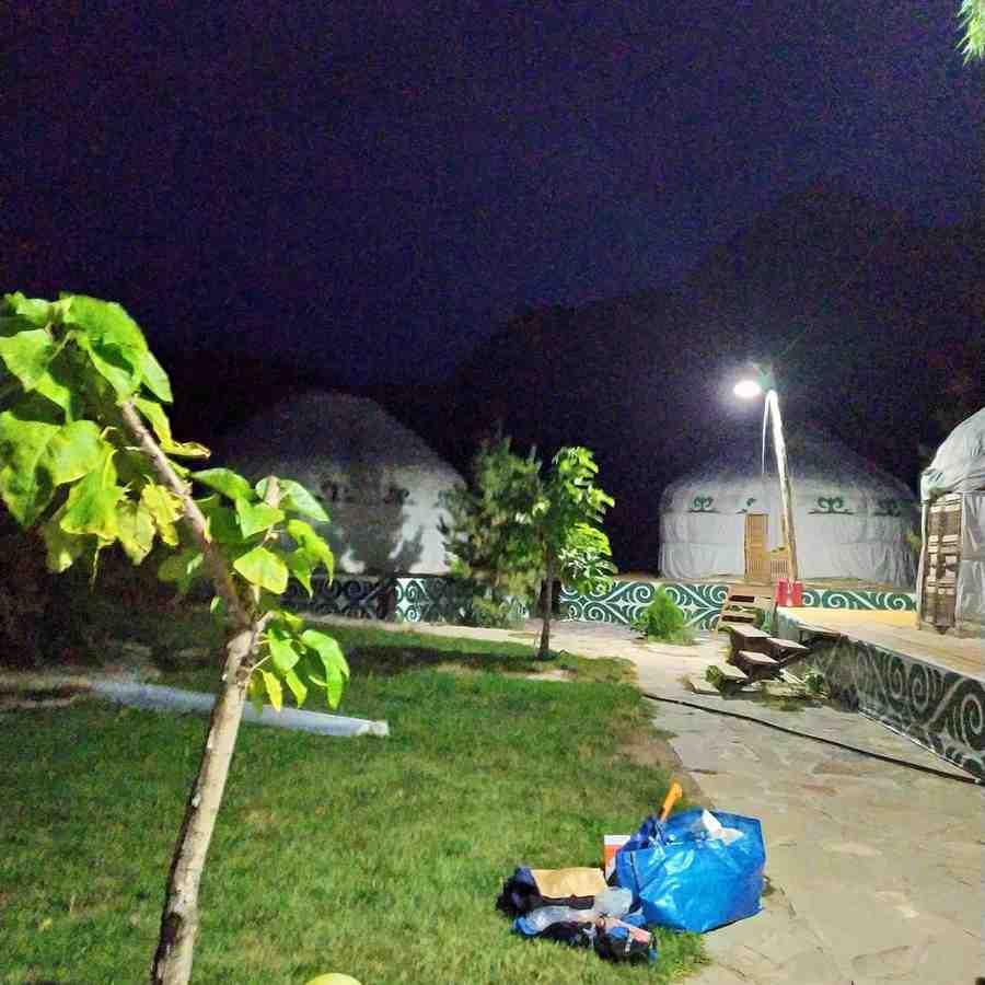 У реки Чарын, что дала название каньону, нас встретил небольшой экокемпинг, состоящий из юрт, туда и поселились мои попутчики. Поужинав все вместе, они начали готовиться ко сну и предложили мне остаться на ночь в доме, но я отказался по ряду причин. С одной стороны, потому что не хотел лишний раз вторгаться в личное пространство (я и так провел с ними весь день), с другой, чтобы получить новый опыт, заночевать в еще одном потрясающем месте под открытым небом. Я разбил лагерь у самого берега реки, на тот момент даже не представляя, какая красота окружает меня вокруг, поскольку мог видеть лишь то, что позволял мне увидеть мой фонарик. Лишь ореолы скал ясно выделялись на фоне темно-синего неба.