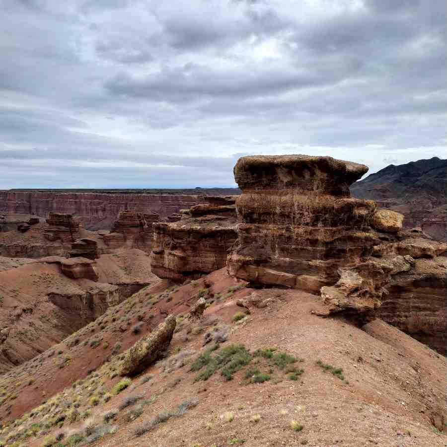 Собрав свои вещи, я отправился исследовать каньон. К смотровой вела длинная дорога, по которой мог подняться каждый, медленно набирая высоту, что меня, конечно, не устраивало и я решил подняться напрямик. Задача оказалась сложнее, чем я предполагал. Вот ты идешь по склону холма, в надежде, что за ним будет путь к желанной вершине, а там обрыв. И так каждый раз. Отличается только глубина пропасти – от 3 до 10 метров. Идешь назад, новая попытка. Дежавю. В какой-то момент я почувствовал себя в лабиринте скал, где как слепой крот я тыкался в каждый угол, надеясь найти верный путь. В одном из мест, чтобы спуститься, мне даже пришлось снять с себя рюкзак, чтобы тот не потянул меня в случае чего за собой – порода под ногами не внушала доверия, что могло быть чревато. Спустя некоторое время я все-таки нашел верную ветвь «лабиринта», а за ней и смотровую.