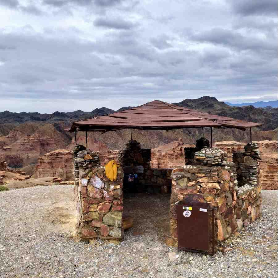 Наверху меня ждало легкое разочарование, нет, виды были потрясающие, но я никого не встретил, хотя ожидал, что к этому моменту мои попутчики уже поднимутся, чтобы отснять кадры для своего фильма. Осмотрев аккуратно сложенную из камней беседку и насладившись пейзажами, я понял, что лагерь наверху мне поставить не удастся – дул слишком сильный ветер, не предвещая ничего хорошего для этой затеи. Тогда я решил продолжить свой путь в сторону Киргизии.
